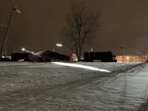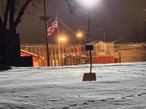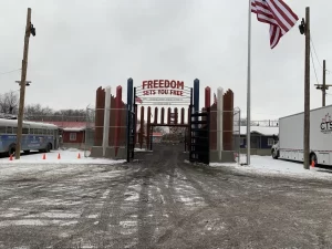 نشانهای به نمایش درآمده، تحت عنوان Freedom Camp 47 با طرح رنگی قرمز، آبی و سفید، شبیه به پرچم آمریکا و لباس هوملندر هستند. همچنین، جرثقیلها و تجهیزات بزرگ دیگری نیز در داخل حصارها مشاهده میشوند که احتمالاً برای فیلمبرداری و اجرای بدلکاری مورد استفاده قرار میگیرند.