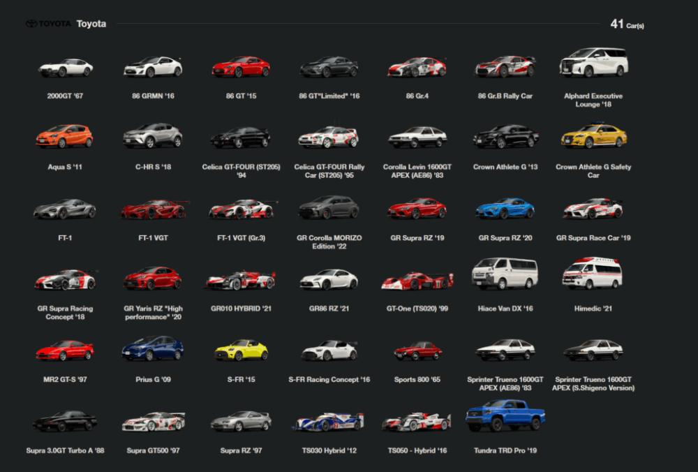 به گزارش GamingBolt، این وبسایت نهتنها اطلاعات فنی و تصویری کاملی از خودروهای موجود در بازی ارائه میدهد، بلکه بهنوعی به یک پایگاه داده تخصصی برای علاقهمندان به اتومبیل تبدیل شده است. در حال حاضر، طبق اعلام رسمی، تا جولای ۲۰۲۵ تعداد خودروهای قابل انتخاب در بازی به ۵۳۹ مدل رسیده است. این فهرست شامل خودروهای کلاسیک، مسابقهای، مفهومی و مدرن از برندهای مختلف جهانی است. هر خودرو در وبسایت با جزئیاتی دقیق معرفی شده؛ از حجم موتور و نوع سیستم انتقال نیرو گرفته تا حداکثر گشتاور، توان خروجی، نوع مکش، ابعاد بدنه و حتی تاریخچه تولید.