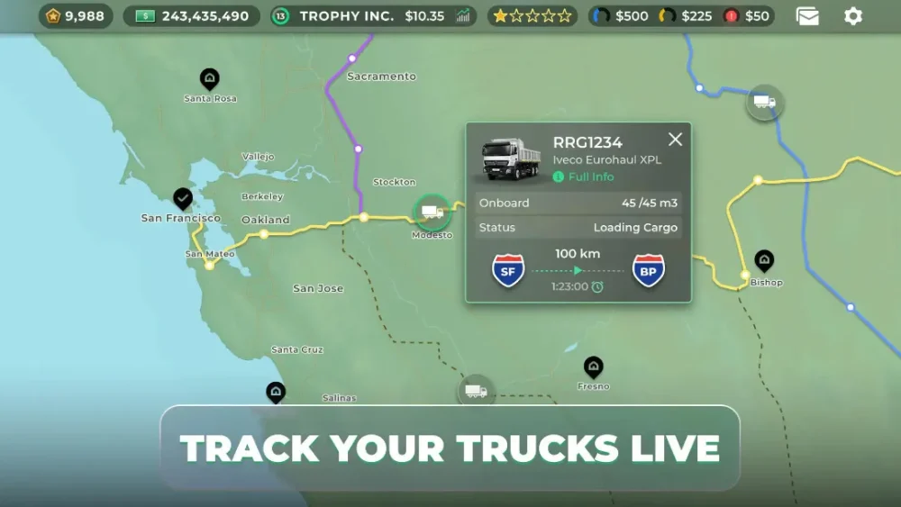 نقشهای گسترده در اختیار شما قرار دارد که در آن باید مسیرهای حملونقل را طراحی کنید، پایانههای باربری تأسیس نمایید و با خرید کامیونهای تخصصی مانند یخچالدار یا تانکرهای سوخت، خدمات خود را گسترش دهید. هر تصمیم شما، مستقیماً بر سودآوری شرکت تأثیر میگذارد. قیمت سوخت بهصورت پویا تغییر میکند و اگر در زمان مناسب اقدام نکنید، ممکن است حاشیه سودتان بهشدت کاهش یابد.