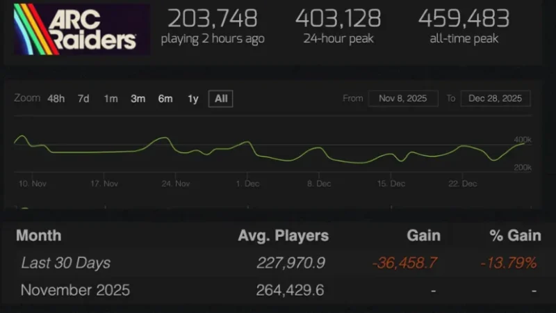 بازی Arc Raiders از زمان انتشار توانسته به یکی از پدیدههای چندنفره سال تبدیل شود و برخلاف بسیاری از عناوین مشابه، بازیکنانش را حفظ کند. طبق گزارش Tech4Gamers، این شوتر استخراجمحور توانسته ۸۶ درصد از جامعه کاربری خود را در استیم نگه دارد؛ آماری که در دنیای بازیهای آنلاین بهندرت دیده میشود.